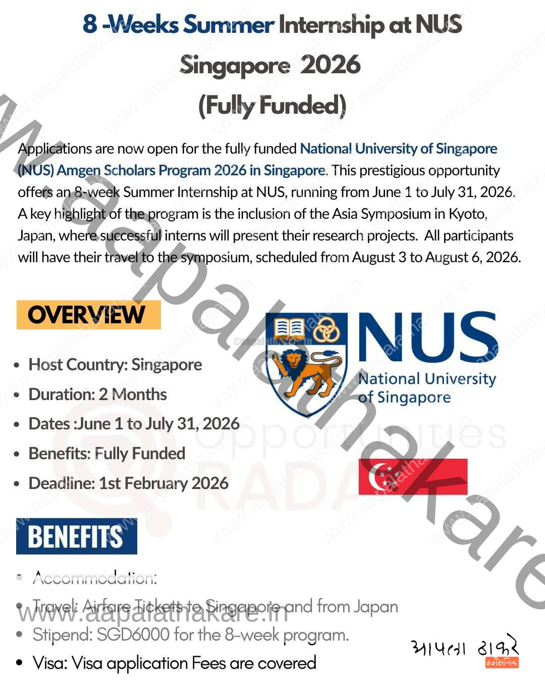 सिंगापूरमध्ये ८ आठवड्यांची पूर्णपणे मोफत इंटर्नशिप! ₹३.७५ लाखांचे स्टायपेंड आणि जपान ट्रीप – NUS Amgen Scholars Program 2026